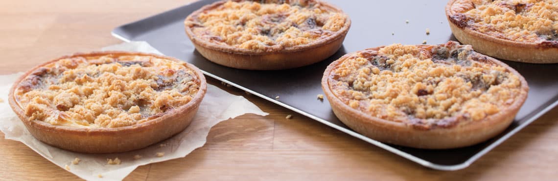 1. Pour l’appareil à quiche : Mélangez les oeufs et la crème fraîche pendant 2 min au fouet, assaisonnez et réservez au froid.