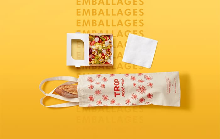 - Emballages pour la vente à emporter : Boîte de burger, support à pâtisserie, saladier rond Eco-kraft, mini-fourchette, couverts en bois, sac kraft…