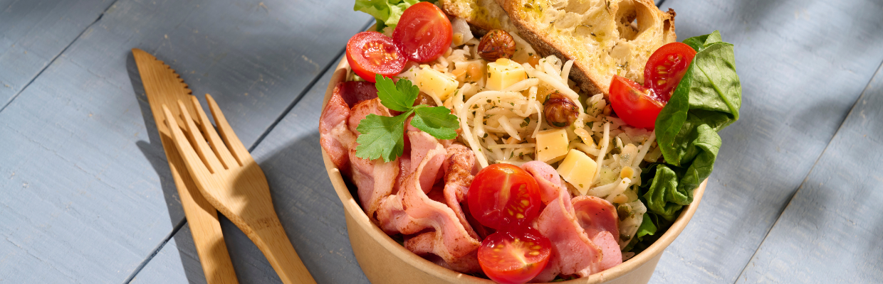 Au centre du bol, ajoute la base de la salade verte : Ajouter la salade de céleri, chou, comté et noisette Forme un petit mont pour donner du relief. |